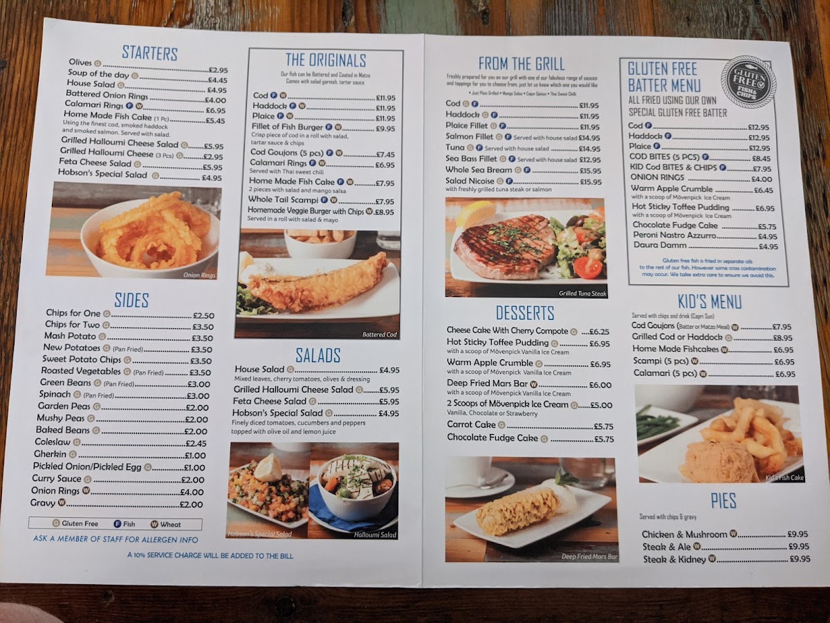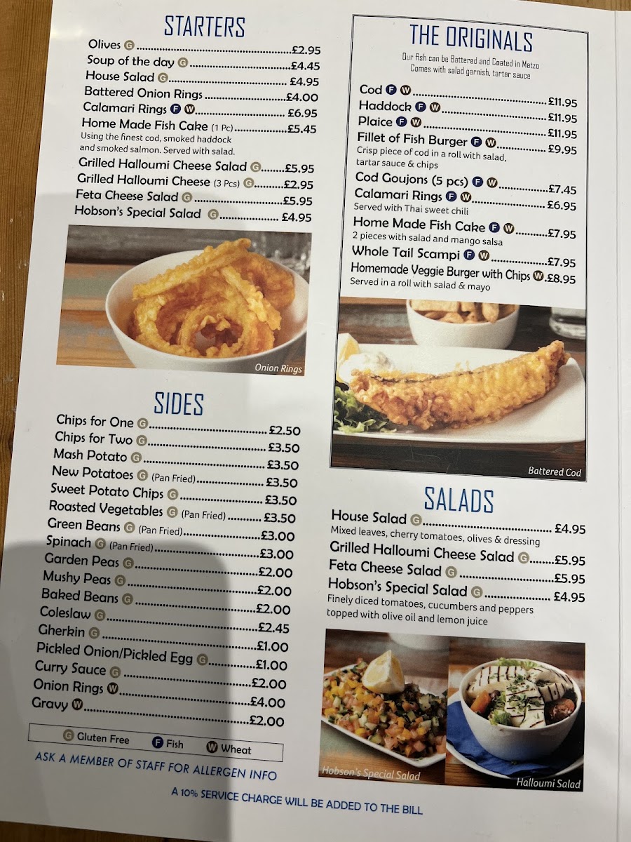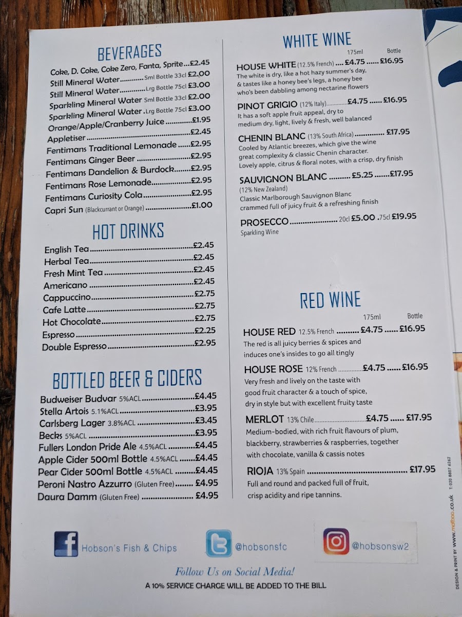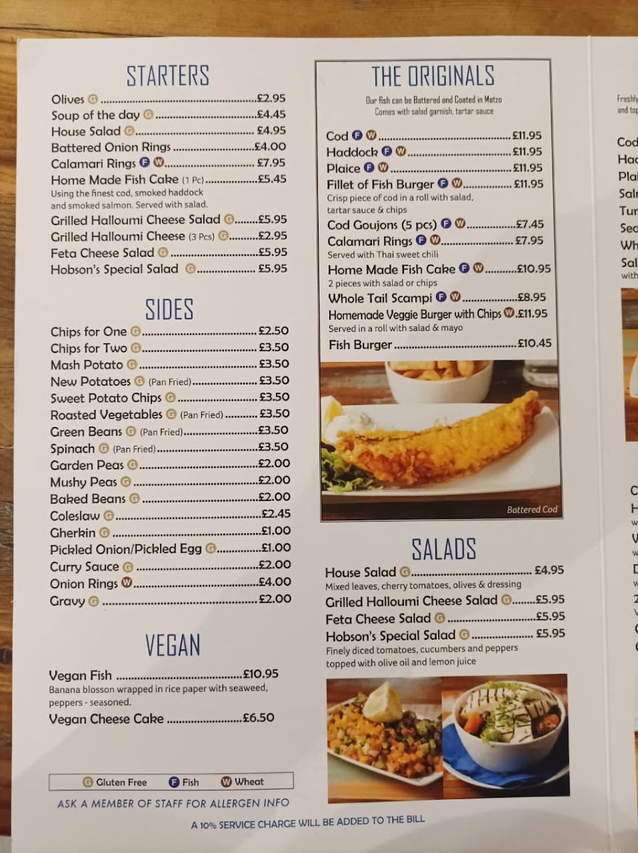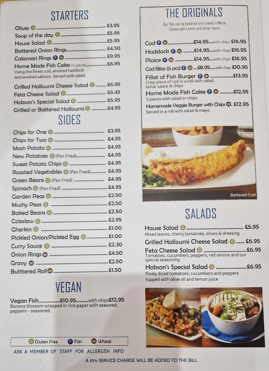 Welcome to Hobson's Fish & Chips, a delightful gem nestled in London at 9 Porchester Rd, where traditional British fare meets exceptional flavor. Their menu showcases a variety of expertly battered fish, including cod, halibut, and haddock, ensuring every seafood lover finds something to savor. Each dish is served with generous portions of hand-cut chips and optional sides like mushy peas and onion rings.